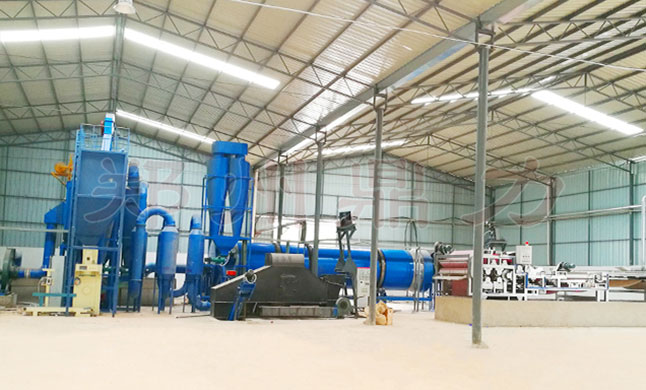 Material flow : 75-85% moisture content material first with special dehydration machine removing a part of moisture, the moisture removed around 68%, then send into the dryer by screw conveyor to realize downstream drying. Under the effect of inner shoveling plate, materials are took and scattered constantly, and move in spiral forward method. Inside mixing blade device will be fully stirred and crushed material, material and hot air through full heat exchange, the rapid evaporation of water vaporization, reaching about 35%, discharged by the screw conveyor, then send into the semi-wet material crusher, crushed material size below 1mm, then into pulse air drying process, within 3-10s the material quickly removed to 14% by the cyclone discharger and Pulse bag dust collector recovery dry powder, exhaust emissions amount to the national standard requirement, to complete the entire drying process.
