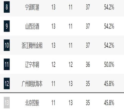 8-13分別是寧波、山西、浙江、遼寧、廣州和北控。寧波、山西和遼寧最近的趨勢非常好,他們都保持了連勝。特別是遼寧,第一階段迷失后現在已經三連勝,隨著小外補強,有望迎來崛起。只是這輪浙江輸給了天津,這應該算是冷門了,球員和教練組的問題都非常大。廣州則被寧波給絕殺了,甚至現在郭艾倫還賽季報銷,對于球隊不是好的消息。北控則輸給了上海,實力差距大也沒有辦法。