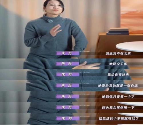 當(dāng)時朱丹在外地回不來,田笑蜜就寄了張白紙過去,說"你簽個名就行,內(nèi)容我后面填"。