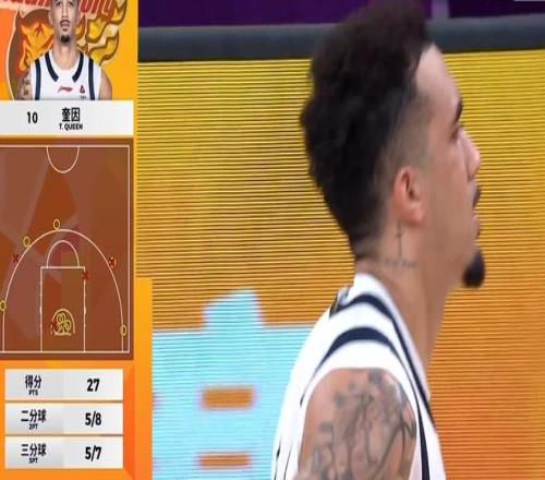 下半場(chǎng)塔克開(kāi)局怒送1犯1失誤,奎因接徐杰助攻飚進(jìn)弧頂三分(已經(jīng)5中4),杜潤(rùn)旺底角三分怒砸籃板側(cè)沿,徐杰2犯下場(chǎng),阿旺罕見(jiàn)防下胡金秋一個(gè),少杰下順再上進(jìn),7分46秒阿旺3犯被打掉,嘉哥補(bǔ)位。
