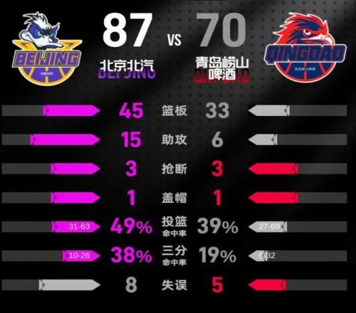 本場(chǎng)取勝后,北京首鋼戰(zhàn)績(jī)升至26 勝 13 負(fù),穩(wěn)居積分榜第四位,青島則遭遇失利,戰(zhàn)績(jī)21 勝 16 負(fù),排名下滑至第八。