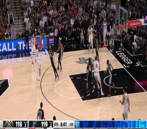 這還不是最高潮,第四節剩下5分鐘前,掘金依然以118-119落后1分,隨后的不到2分鐘里,穆雷一人打了馬刺一波7-0: