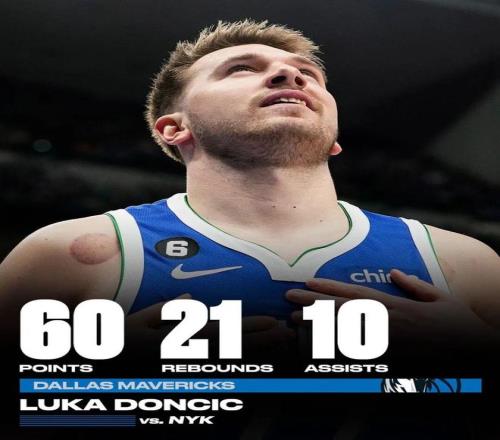 要知道,50+三雙的難度不亞于單場60+甚至70+,NBA歷史一共只發生17次而已(單場70+則是16次),東契奇生涯只有過1次,即2022-23賽季,面對尼克斯的單場60分21籃板10助攻。