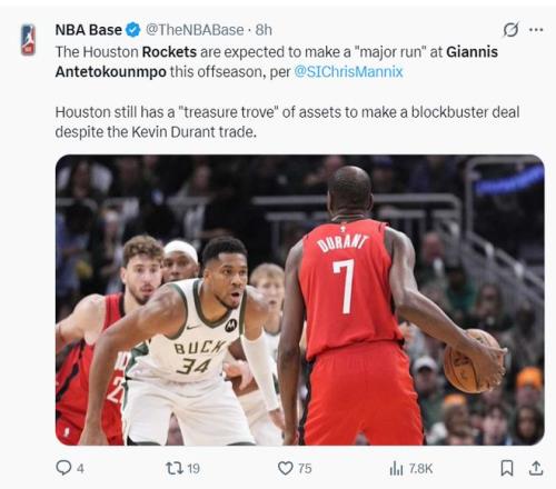 根據(jù)克里斯-曼尼克斯的報(bào)道,火箭隊(duì)內(nèi)部也相信他們手中的籌碼可以打動雄鹿,就算剛剛完成KD的交易他們也還手握豐厚的籌碼。