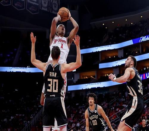 本場比賽中,火箭的先發后場新星阿門-湯普森(Amen Thompson)的表現還算是比較穩定的。湯普森全場出場39分53秒,投籃10中5,罰球8中8,得到了18分8籃板6助攻2搶斷的數據,還有1次犯規,正負值為+12。阿門還是持續了自己最近一段時間的穩定表現,他保持了尚可的進攻效率,他在對手內線的威脅度還是非常高的,終結能力也是不錯的,他在傳球和組織方面也是起到了很好的效果的,而且他在傳球和組織方面也能起到一定的作用,他在防守端也是同樣有著相當穩定的輸出。阿門在本場比賽中的出場時間又一次居高不下,但是他還是在這種情況下保持了自己在攻防兩端的水準并且為球隊的勝利做出了自己的貢獻。