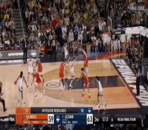 回顧半決賽,康涅狄格大學(xué)以71比62力克三號(hào)種子伊利諾伊大學(xué)。當(dāng)對(duì)手下半場(chǎng)將14分分差蠶食殆盡時(shí),大一新生布雷隆·穆林斯在終場(chǎng)前52秒命中冷血三分,將領(lǐng)先優(yōu)勢(shì)擴(kuò)大到66比59。一周前絕殺杜克的神跡還歷歷在目,本場(chǎng)穆林斯的復(fù)刻更是將康大送上了決賽舞臺(tái)!