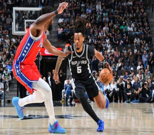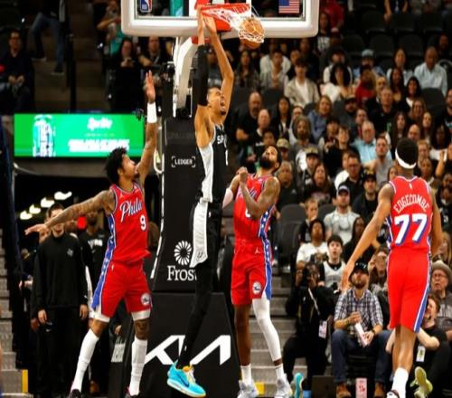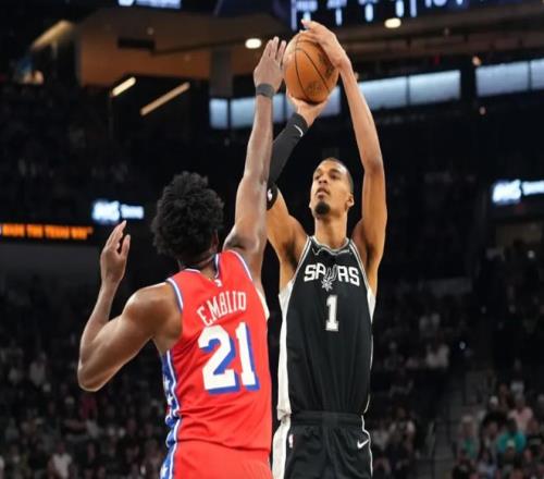 中段喬治再中三分球,卡斯爾和文班亞馬帶隊回應,文班亞馬在籃下簡直不講理,恩比德下場后,莊神也頂不住。不過喬治和烏布雷手感不錯,76人保持微弱領先。節末約翰遜聯合巴恩斯連續得分,文班亞馬空中抓球暴扣,第一節馬刺29-28領先。進入第二節,恩比德開始造殺傷,文班亞馬被犯規后痛苦倒地,回更衣室接受治療。喬治聯合格萊姆斯上分,福克斯和卡斯爾單打回應。中段文班亞馬回來,繼續背扣,恩比德也開始利用自己對抗優勢上分,兩人在籃下互爆。節末恩比德躲開文班亞馬想要自拋自扣,被犯規!