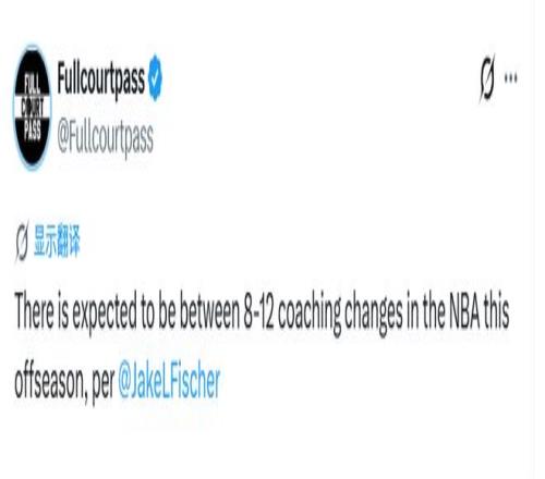 北京時間4月9日,據名記Fischer報道,一位熟悉教練市場動向的聯盟消息人士透露:“今年休賽期將會有8到12支球隊換...