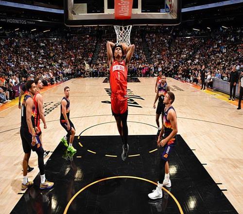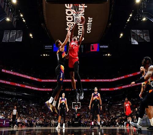 本場比賽中,火箭的先發后場新星阿門-湯普森(Amen Thompson)的表現算得上是現象級,他也是又一次將自己在各方面的才能都發揮了出來。阿門全場出場35分37秒,投籃16中10,三分線外1中0,罰球2中2,得到了22分11籃板8助攻3搶斷1蓋帽的兩雙數據,其中還包括了6個前場籃板,還有4次失誤和4次犯規,正負值為+2。阿門在進攻端不斷對手內線發起沖擊,展現出了自己超強的終結能力,他在運動能力方面的優勢也是顯露無遺。除此之外,阿門也展現出了一定的傳球能力和策應能力,在進攻端的作用非常全面。阿門在防守端更是打出了極其出色的表現,他給太陽的幾名后場球員制造了巨大的防守壓力,這也直接導致了太陽的進攻出現了受阻的情況。阿門在前后場籃板爭搶方面的表現同樣是極其出色的,同樣起到了關鍵性的作用。總體來看,阿門在本場比賽中算是起到了極其出色的效果了,這也是為球隊的勝利做出了巨大的貢獻。