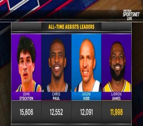 憑借這樣的表現,詹姆斯生涯總助攻數來到11998次,距離12000次大關僅差2次,有望成為NBA歷史上第四位達成這一壯舉的球員,前三位是斯托克頓(15806次)、保羅(12552次)和基德(12091次)。