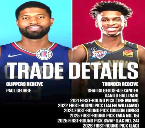 19年的夏季,剛率領猛龍奪冠的倫納德成為自由球員,立刻引發聯盟的瘋搶,而處于洛杉磯的湖人、快船成為倫納德最大的潛在下家,不過,由于詹姆斯剛到湖人,一山不容二虎,最終倫納德選擇加盟快船,但倫納德加盟前要求快船不計一切代價得到保羅喬治。雷霆嗅到機會獅子大張口,直接挖空了快船所有的未來資產!于是一筆足以改變快船近10年歷史的9換1交易達成,快船為了得到喬治,送走了亞歷山大、加里納利以及5個無保護首輪、2個首輪互換權。