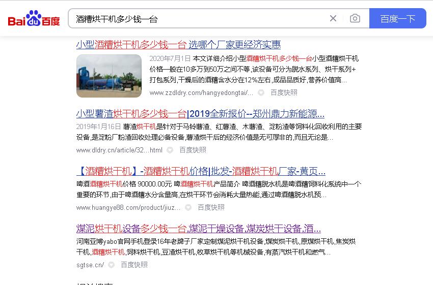對于一些用戶搜索我司產品如“酒糟烘干機多少錢一臺”或其他關鍵詞,百度搜索結果頁面出現了我司產品和公司名稱,但是網址卻是:sgtse. cn,這樣的情況進行聲明: