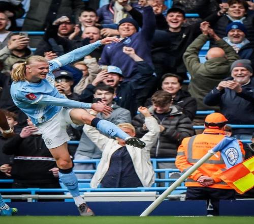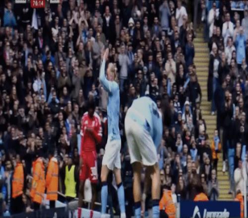 第77分鐘,哈蘭德被換下,全場球迷起立鼓掌。