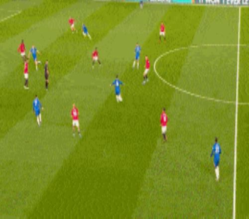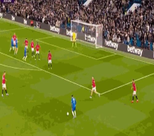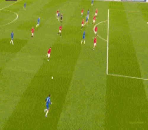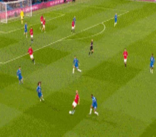 第43分鐘,B費右路得球下底,隨后倒三角傳球,庫尼跟進推射破門,曼聯1-0切爾西。