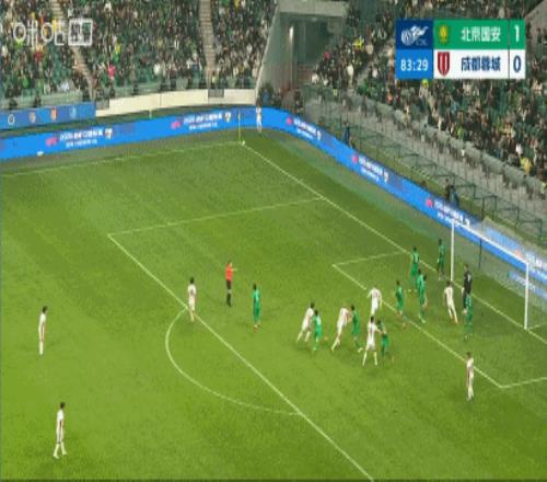中超聯賽第5輪,北京國安VS成都蓉城。比賽第84分鐘,成都蓉城進球。裁判員判進球有效。VAR未介入。